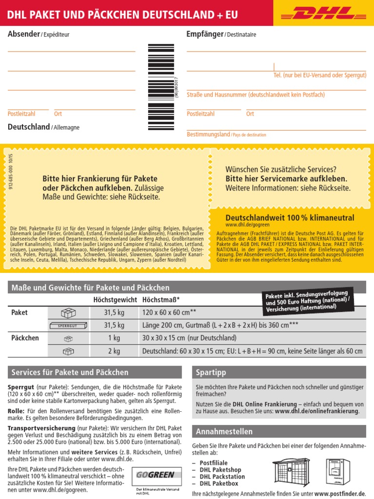 Dhl paketaufkleber zum ausdrucken pdf paketscheine zum ausf c3 bcllen november 2020 um 05 43 von silke grasreiner from lh3.googleusercontent.com. Hallo, ich will etwas bei ebay verkaufen. Das selbstklebende etikett (grauer bereich) stimmt mit dem dhl paketschein pdf überein. International und für pakete die agb dhl paket / express national bzw. Weiss jemand, wo man paketaufkleber für die dhl online paketscheine herbekommt?